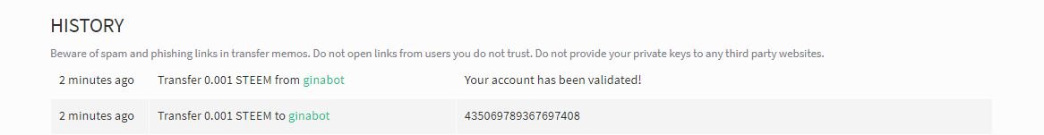 Now send any amount of #steem or #SBD with this memo to @ginabot from your account which you use with the command(..reg).