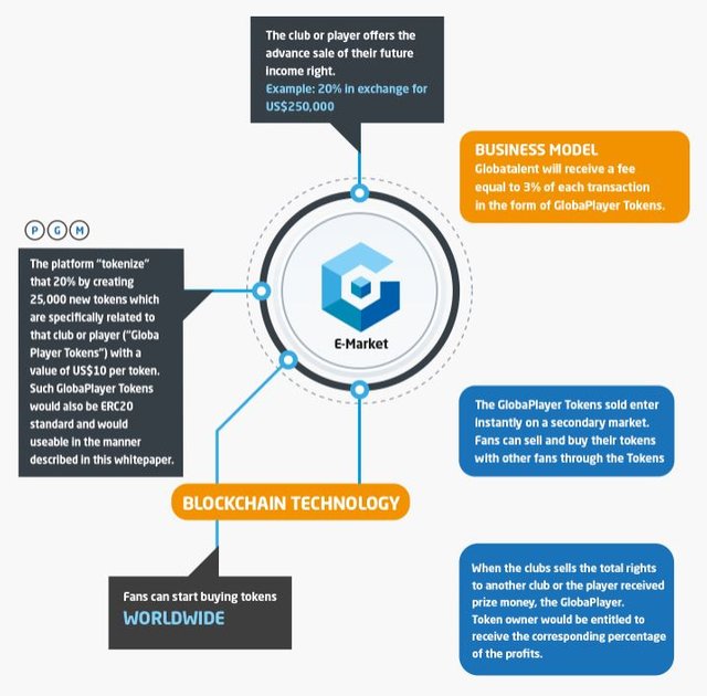 Платформа Globatalent-это децентрализованный рынок, на котором инвесторы и болельщики могут вкладывать свои средства в спортивные клубы или игроков и получать прибыль от своих вложений, покупая и продавая будущие преимущества от своих вложений, которую гарантируют: прибыль от трансферов игроков, денежные призы и гонорары спортсменов, прибыль с продажи билетов на соревнования, контракты игроков и клубов на телевидении и любой другой доход, получаемый клубами и спортсменами.