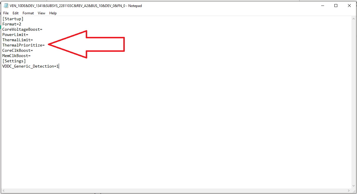 Step C-2 Go into your MSI Afterburner main directory and locate the "Profiles" folder titled "VEN_10DE&DEV_1341&SUBSYS_2281103C&REV_A2&BUS_10&DEV_0&FN_0". Open it with notepad since you'll only need simple word processing functions.