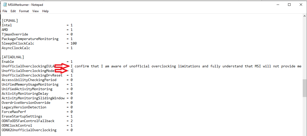 Go into your MSI Afterburner main directory and locate the CFG file titled "MSIAfterburner. Open it with notepad since you'll only need simple word processing functions.
