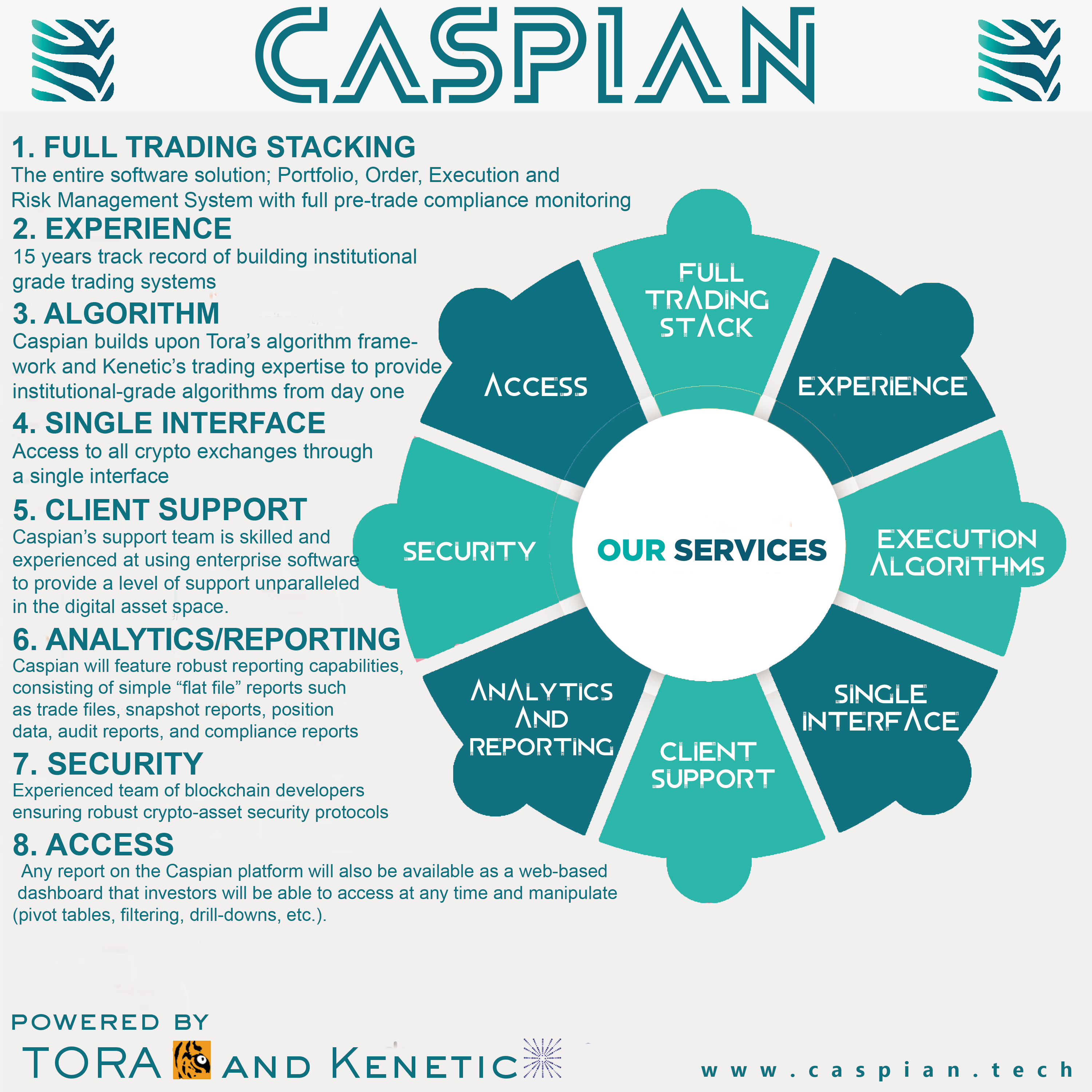 Caspian operates on a single user-friendly interface, providing investors with sophisticated tools such as an all inclusive Management System (OEMS), Portfolio Management System (PMS) and Risk Management System (RMS). Caspian is able to provide cryto investors with features such as a professional grade execution, position management and reporting capabilities.