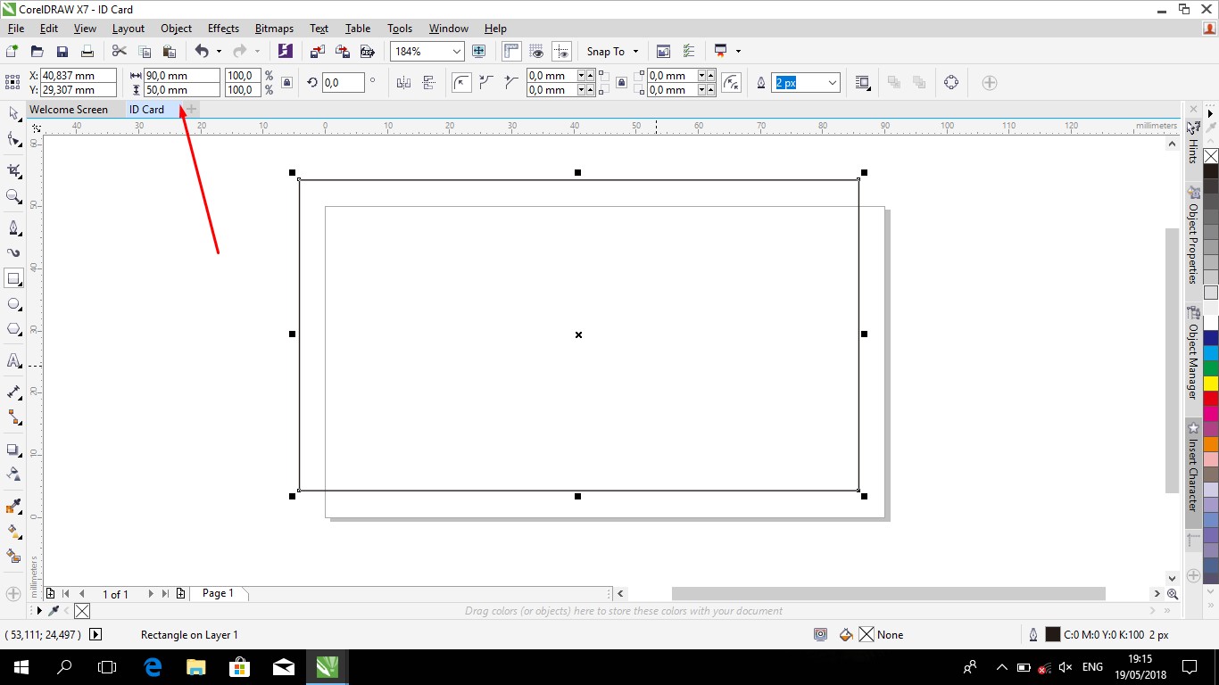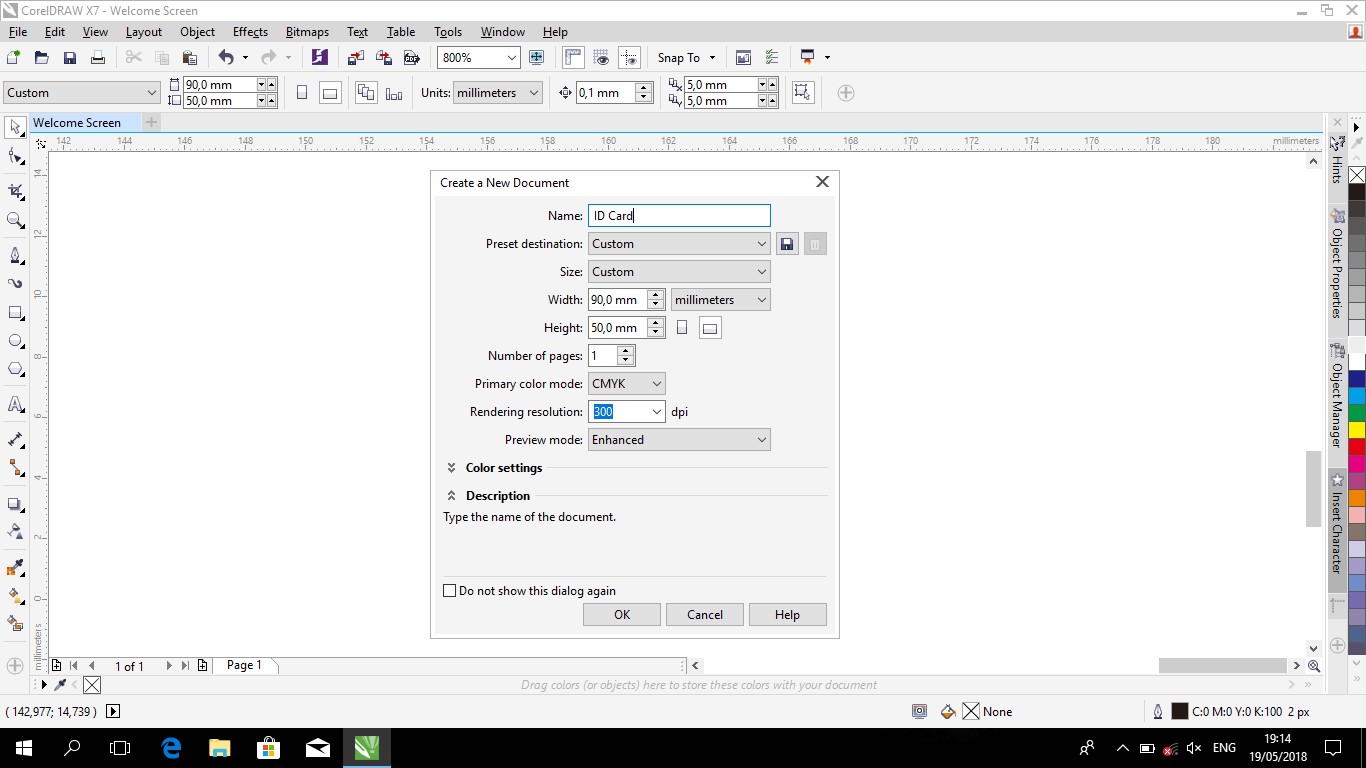 - Open the CorelDraw program and create a new document with millimeters and set the length and width of "90 mm X 50 mm".
