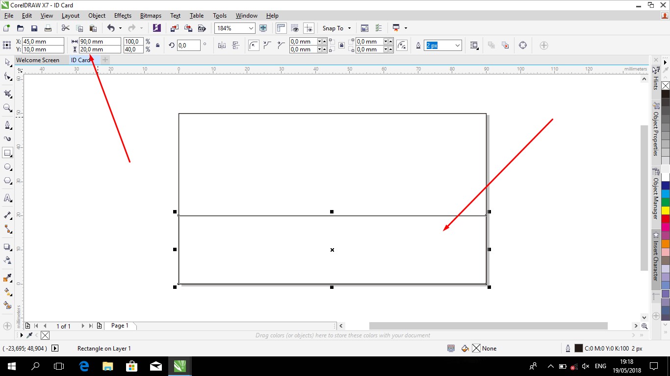 - Create a box with a size of 90mm X 50mm using the Rectangle Tool, then fit it on paper documents.