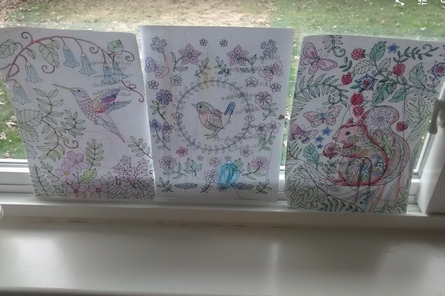 She likes to color, while listening to bible.