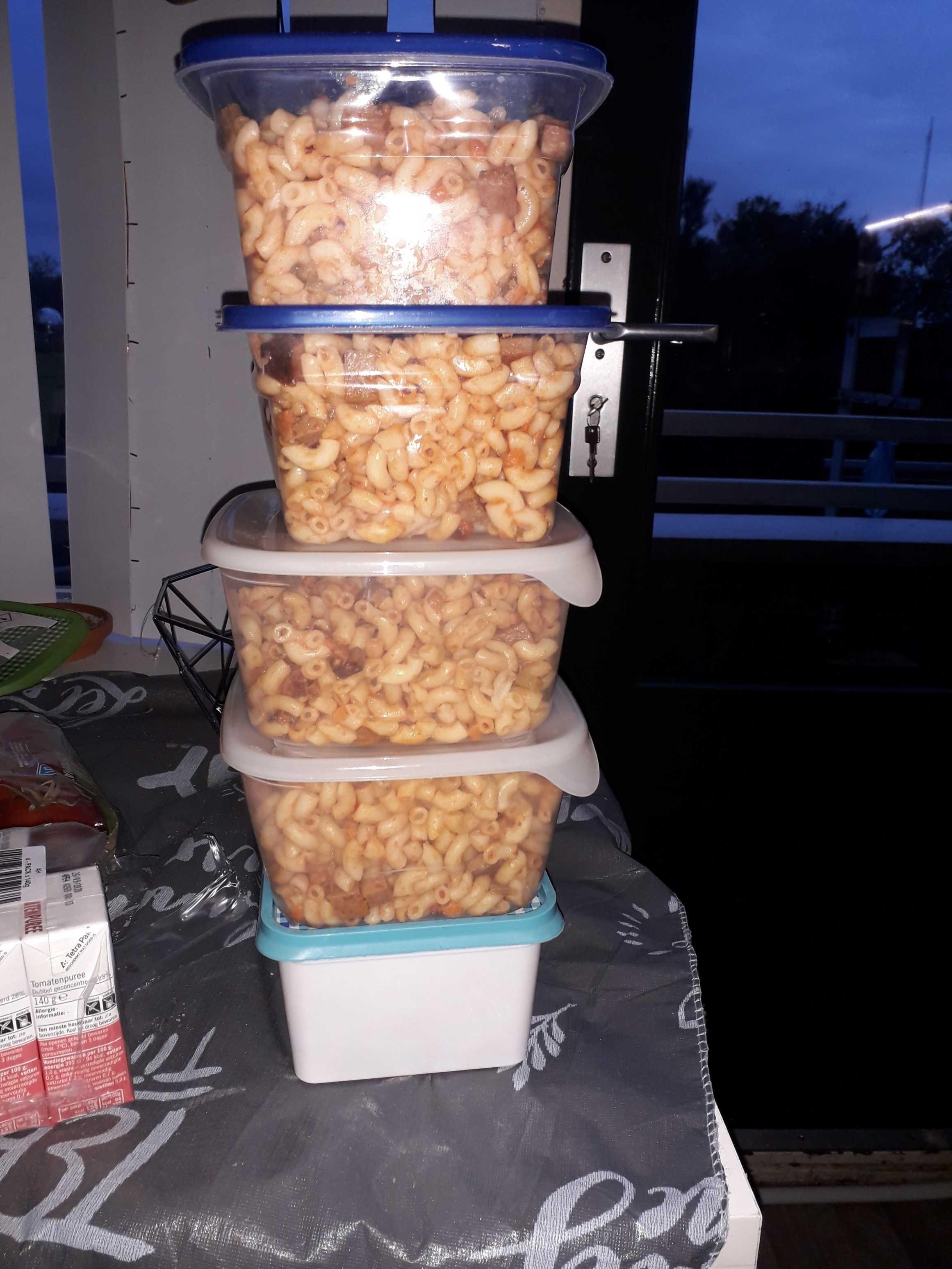 I have 5 portions of macaroni left from yesterday. I'll put it in the freezer. The same like the greavy and meatballs I made. Tomorrow I'm making something else and posting about it.
