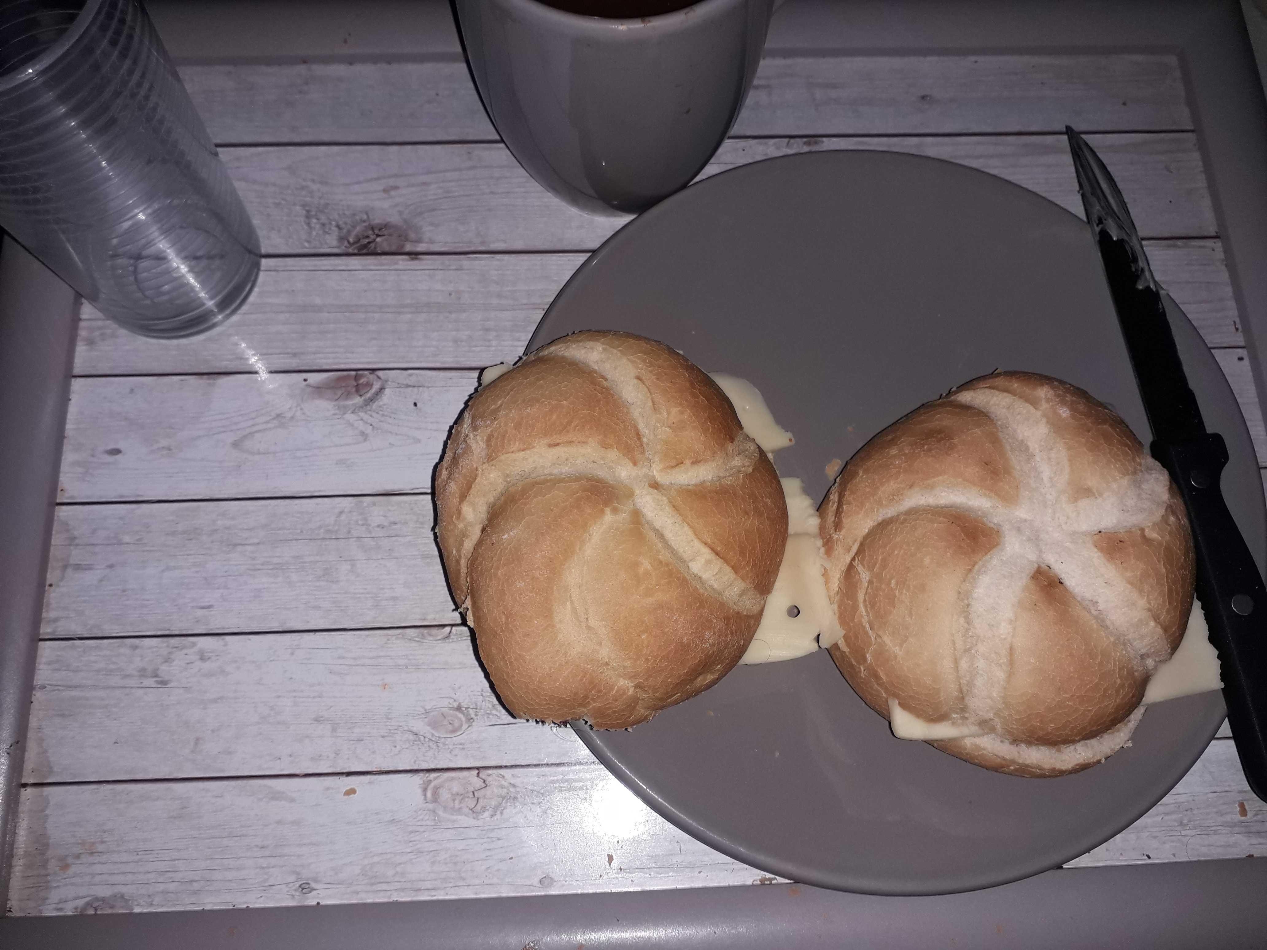 This morning I had coffee with some nice bread and cheese. I couldn't find other bread and I already touched this bread when I found the other bread so I had to buy this bread too. It doesn't matter I had some nice breakfast today.