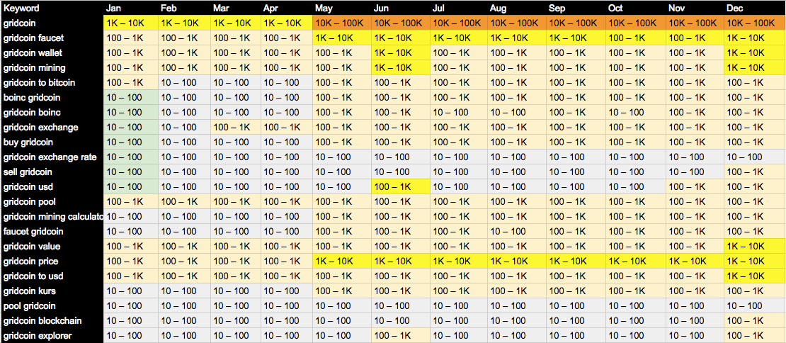 Straight to a point, these are keywords searched in regards to Gridcoin, and the changes over the months of 2017.