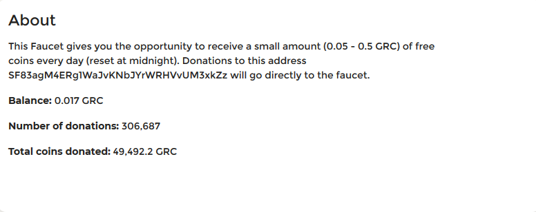 The earnings of this post will be used to buy GRC for the faucet as well!