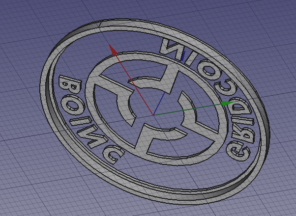 I took inspiration from a previous design by @joshoeah. I adapted it a bit to a level of detail I think the printer is capable of printing. The chip has a diameter of 40mm and the text might be stretching too much.