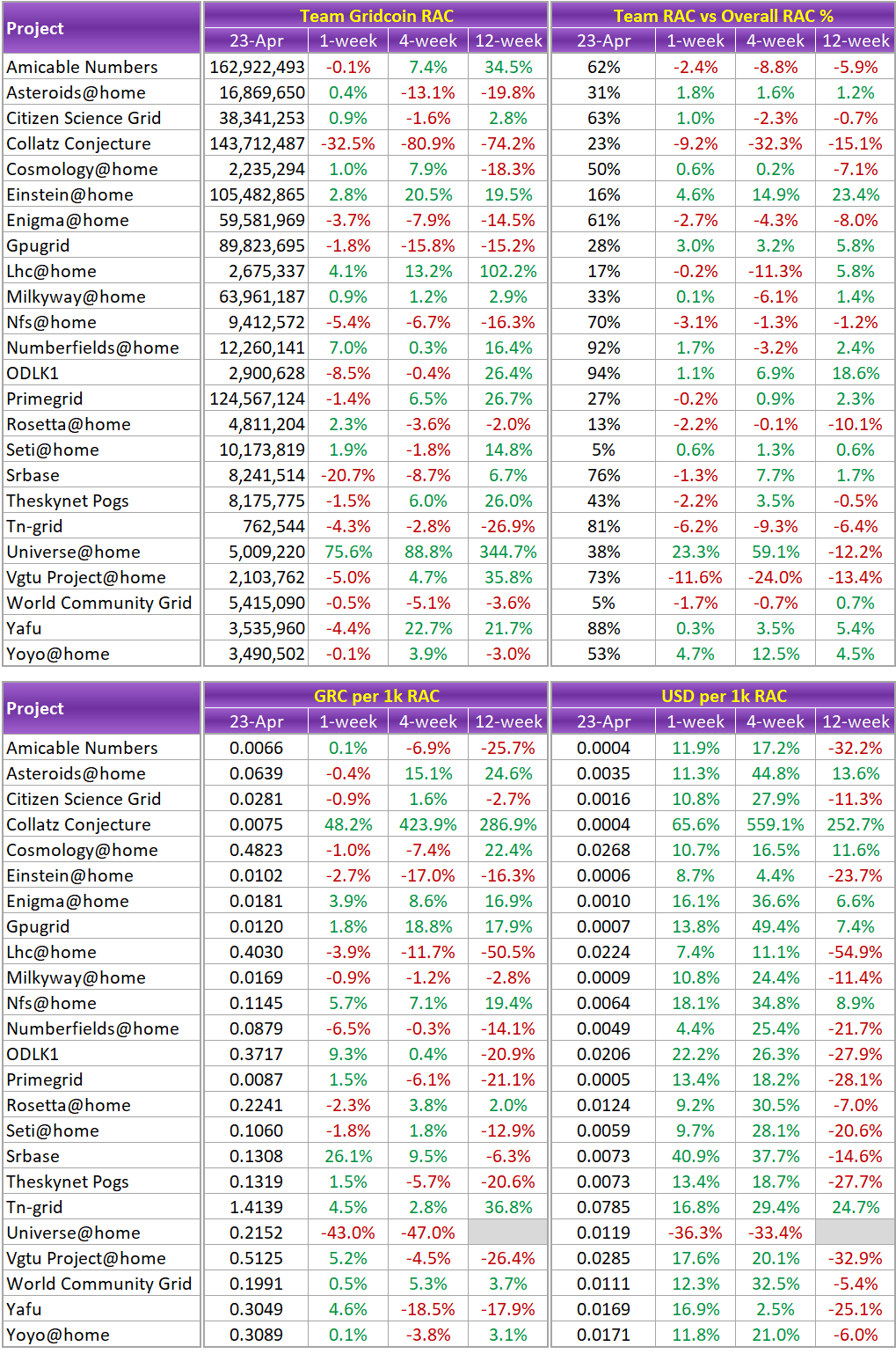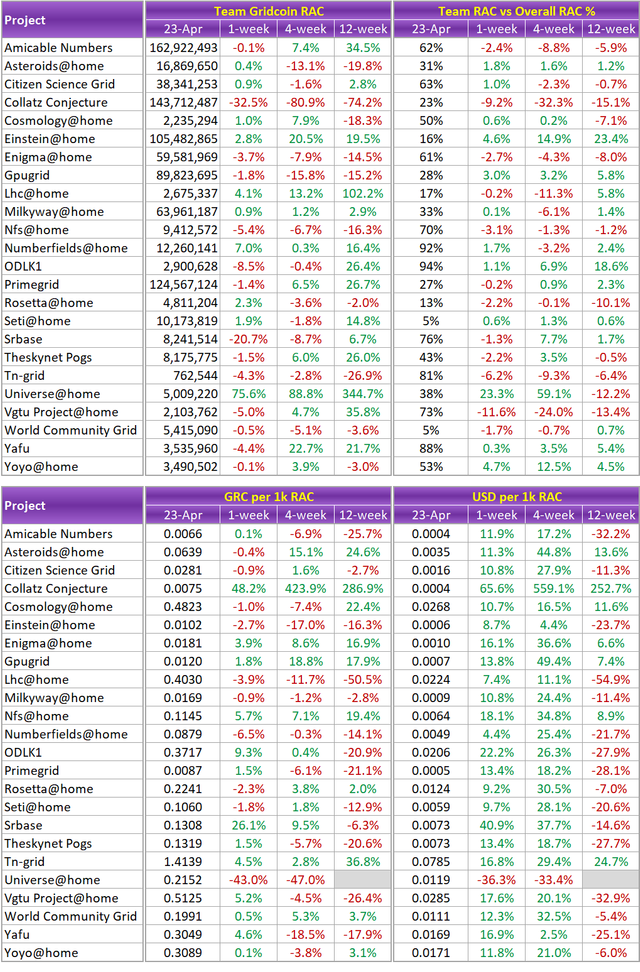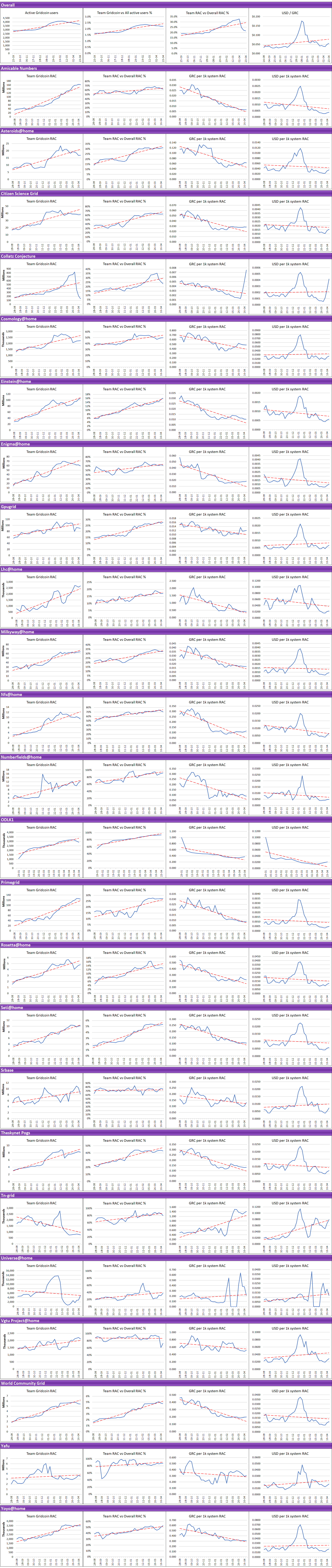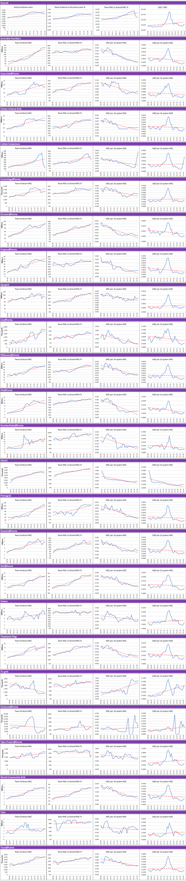 - Team RAC vs Overall RAC % = The proportion of RAC output team Gridcoin has produced as part of the overall RAC for the project.