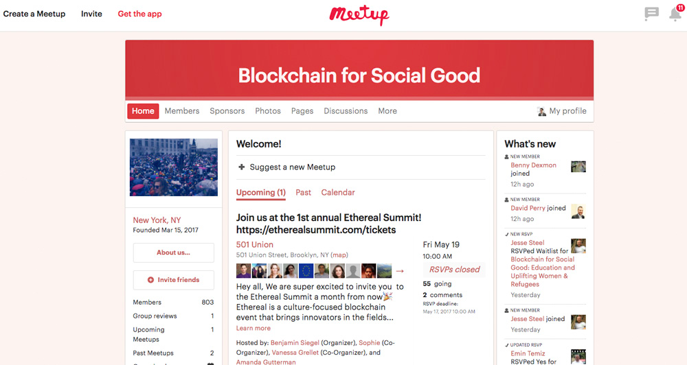So many crypto-based events seem to be absurdly expensive. Even Consensys' first annual conference this week was a whopping $600 (around that amount, the price is gone now that the event is sold out)! Thus, it's wonderful to see smaller, more intimate initiatives such as this Meetup that's open to the public at no cost.