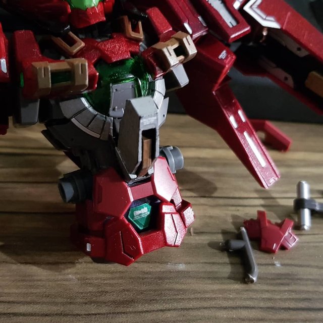Doing some modifications on my Hobby Star Astraea. Using scrap pieces from the same kit (there are tons since this is a remold/recolor of the Exia Avalanche), I added extra length to his torso. Using 2 stomach plates for the front and back sides and a custom made T-bar inside the stomach. I added transparent pieces to cover the open parts. Also added those polycap tubes as accent pieces.