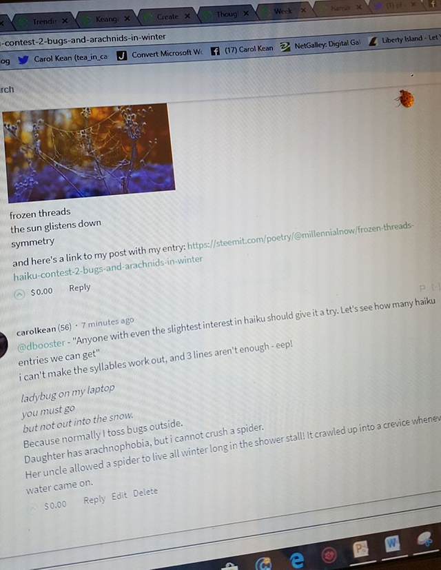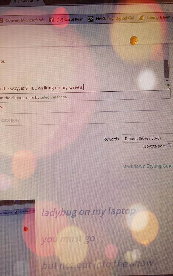 Well, this isn't a haiku, but it was fun trying - and that ladybug, by the way, is STILL walking up my screen.