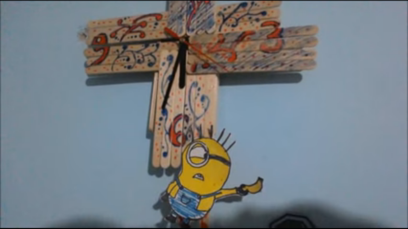 Draw sticks that had been attach on the clock, use a marker color that you like.