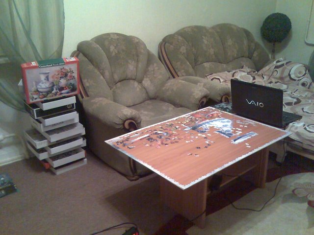 It seems that the heading "Enjoyable with useful" continues ... Being on a long business trip I decided to spend the evening for assembling puzzles, with obligatory registration in baguette. As a basis, I used laminated MDF 4 mm thick, baguette ordered in workshops. In the same place, I ordered a steel cable to hang the picture, which does not let the picture sag with time. Everything turns out quite qualitatively, beautifully and reliably. Now, not only that the whole apartment in the paintings, so also managed to implement several of them, including assembled to order.