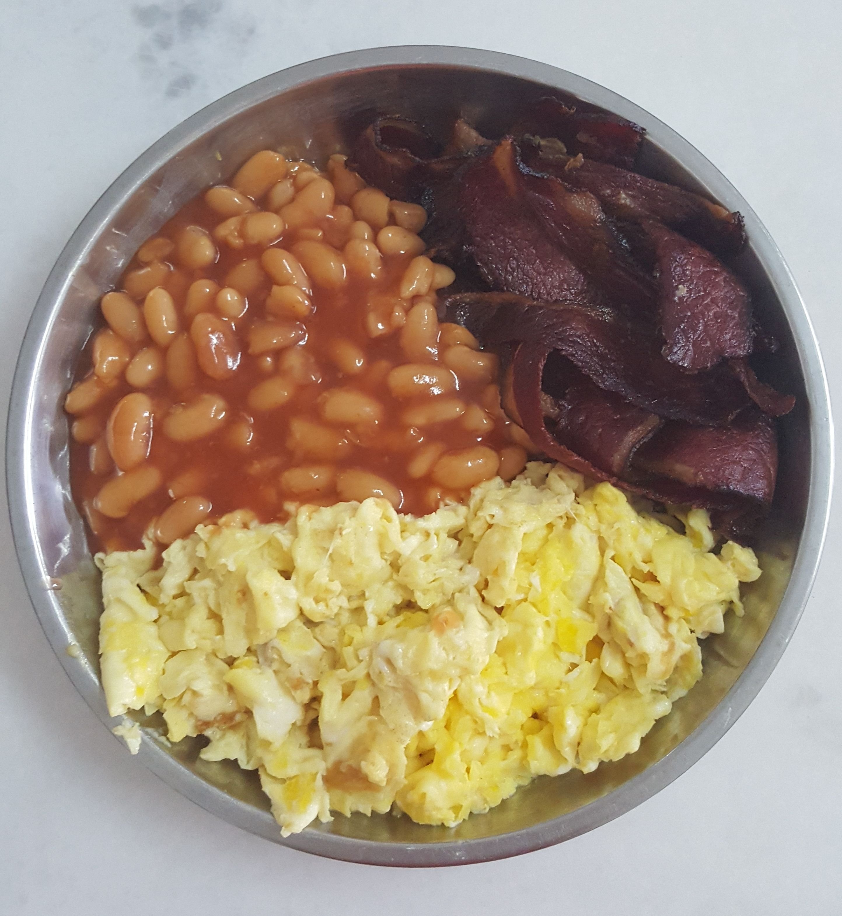 My all-time favourite: Scrambled eggs, bacon and baked bean!