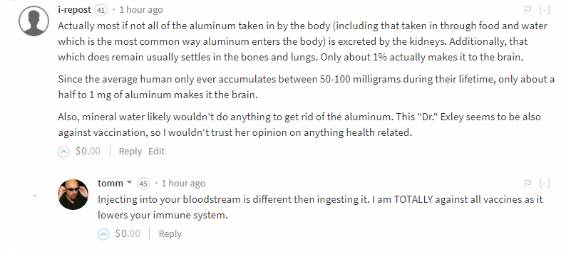 Now this is the only time tomm actually responds to the information about aluminum in vaccines.