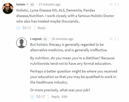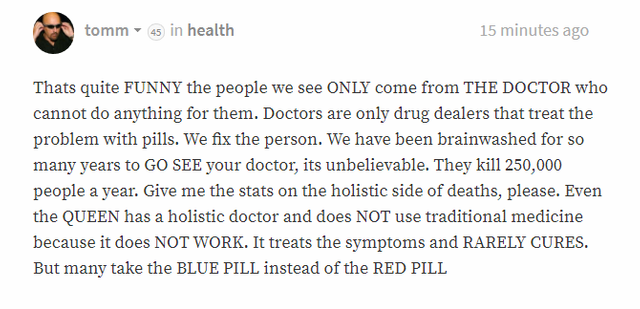 Hi @i-repost. You seem to suggest that anti-vaxxers or indeed those who choose to practice anything other than conventional medicine should not post under the 'health' tag, is this correct?