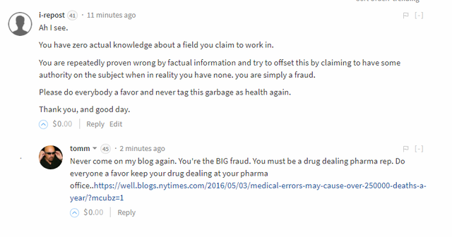 Now tomm will try to show just how correct he is by appealing to his authority in the "business of health."