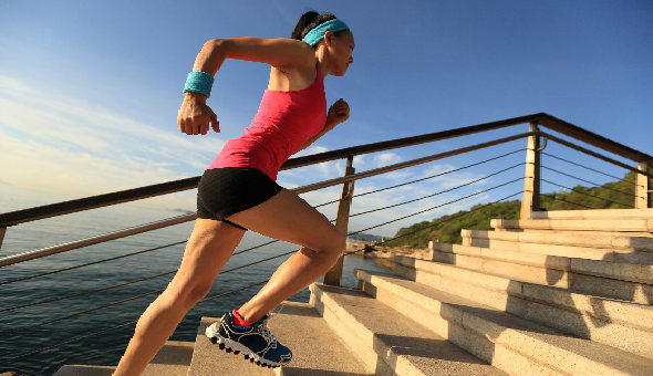 Stair climbing is actually a slightly different exercise than stair stepping. Stair climbing is performed in actual stairs, such as those that may be found in your home or at a stadium. Climbing actual stair fully weight supporting and is more aerobic than stair stepping on a machine. This is a great activity, However, you may have to build up to being able to perform it continuously for a minimum of 10 minutes. Simply walk up to the stair to the top and then walk back down. Since going up is more strenuous than going down, you should maintain the proper intensity by going down the stairs more quickly than you go up.
