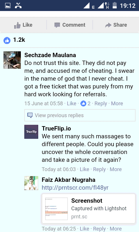 TrueFlip is an awesome company, with proper work ethic, look at all they achieve in 1 year: https://tfl.trueflip.io/en/history. I'm glad I invested in their ICO, and I never had any problem with them either as a player or as an affiliate.