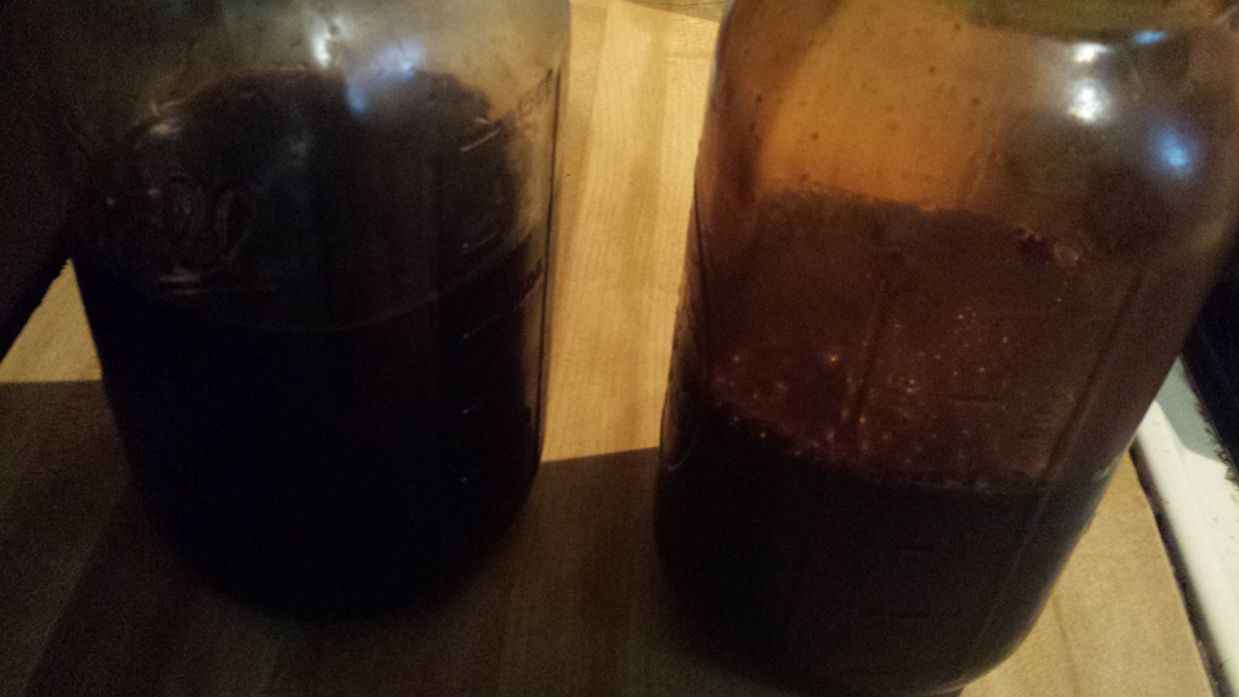 Here we see the gravity extraction on the right, and the steam extracted on the left. Notice, that even though both were shaken, only the gravity extracted bottle is thick enough to coat the inside of the jar. This is a good test for viscosity, if you shake it and the jar remains coated, it is thich enough.