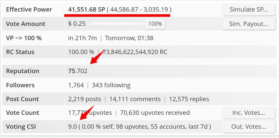 Because of their support at present, I may hold 44586 SP with 75.7 reputation, including 9 Voting CSI.