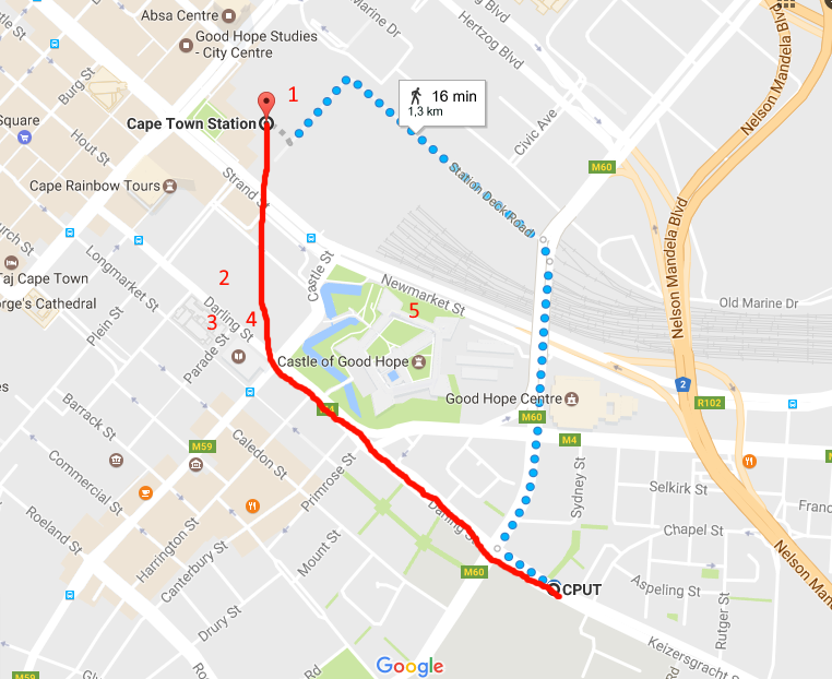 This is ultimately where my stroll starts, getting off the train and passing all the hawkers selling all kinds of stuff like vegetables, chappies, chips, chocolates and loads of stolen goods. I eventually exit the station after having to fight of(not literally) a few drug-fueled beggars where I then cross Strand Street onto the Grand Parade (That grey block).