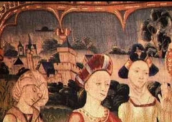 These tapestry of the Notre-Dame Basilica represents the Mary's life. But both of them have an odd flying hat figure in the background.