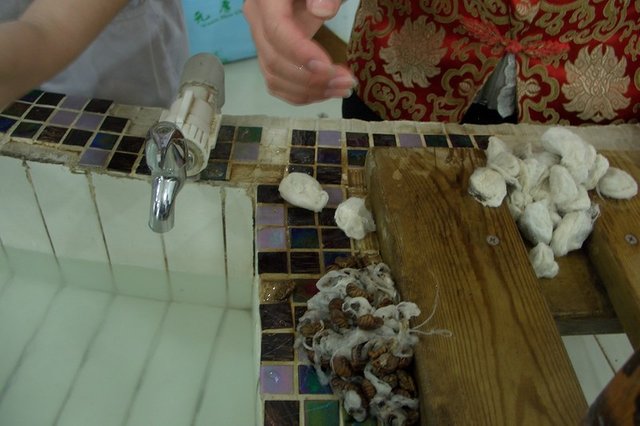 Then it takes another 8-9 days, and the cocoons are ready for unwinding. If you miss the time, the pupa turn into moths and break through the cocoon, damaging the integrity of the thread. So doll, you first need to kill. For this it is subjected to heat, after which the cocoon is immersed in hot water to dissolve the gummy substance sericin that holds the threads. At this point, it only removes a small part, about 1%, but this is enough in order to be able to unwind the thread.