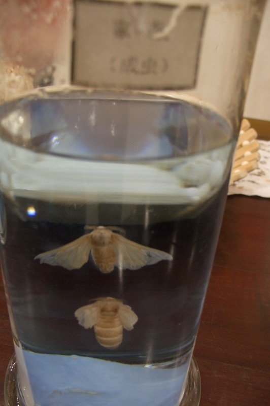 Silk is obtained from cocoons of the silk moth. There are many varieties of wild silk moths. But only one of them was the famous ancestor of Bombyx mori, a blind, flightless moth, from which the finest silk. I suppose that it derived from Bombyx mori mandarina, the wild silk moth inhabiting in white mulberry trees only in China. In the process of selection domesticated she lost her ability to fly and can only eat, to mate, to procreate and to produce silk fiber.