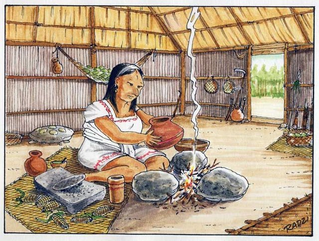 The Maya ground their corn with implements similar to the mortar and pestle. The corn was placed upon a flat stone grinding surface known as a metate. It was then ground by hand using a cylindrical stone grinding tool known as a mano.