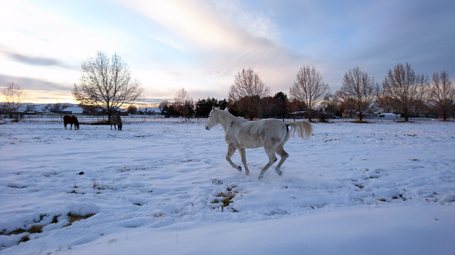This neighbor horse has been very interested in our activities. @yeti-the-dog has been trying to make friends with this horse through the fence for a while, but I think seeing Yeti pulling the kids on the sled might finally have won the horse over. The horse played with Yeti a bit after I shot this video.