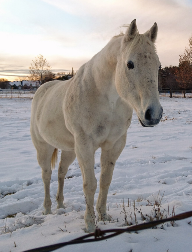 This is very heart-warming it reminds me of my childhood in Kuwait sledding on a sandhill with my dad once.. he must have enjoyed it a lot and your neighbor's Mawr horse is so beautiful!