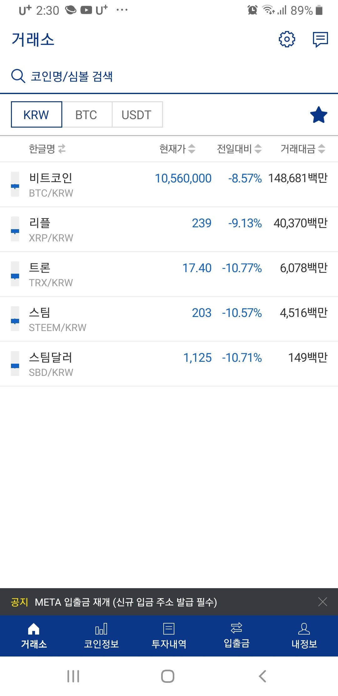 전부 하락이네