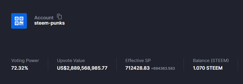 현재 스팀펑크 공식 계정은 @upvu팀에서 인큐베이팅하는 @nodehub팀과 @dev.supporters의 20만 스팀파워 임대분을 포함하여 약 70만 스팀파워를 보유하고 있습니다. 더불어 200명이 넘는 커뮤니티와 함께하는 계정으로 성장하였습니다. 지독한 베어 마켓 속에서도 풀보팅 시 약 7달러 상당을 지원할 수 있으며, 올해 중에는 100만 스팀파워를 초과할 수 있을 것으로 예상합니다.