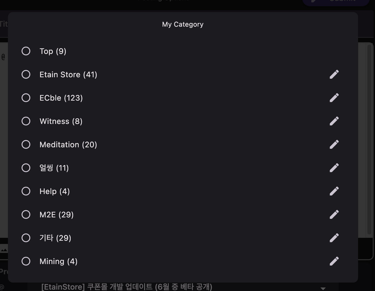 포스팅할 때 글 카테고리를 지정할 수 있어요! Top 카테고리는 최대 9개까지만 설정할 수 있습니다. 신중하게!