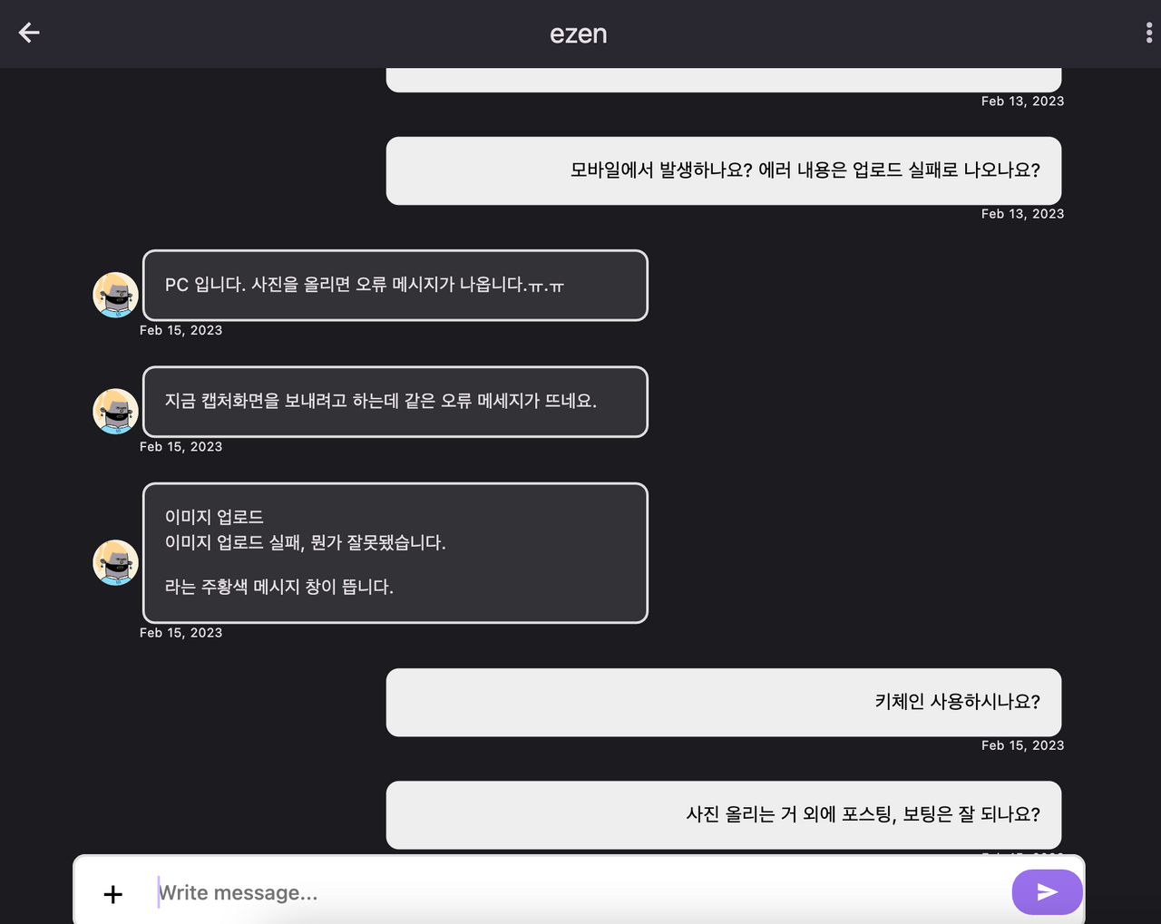 위 리스트를 보면 관심 저자로 등록해 놓은 사람들에게 메시지를 보낼 수 있습니다. 이 때도 대상자가 이씨블 사용자여야 합니다. 카카오톡 오픈 방열지 말고 이씨블 채팅 이용해 보세요! 대상자가 이씨블 사용자가 아니라구요? 초대하세요!