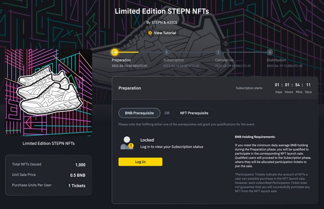 UTC기준 4월 14일 부터 16일까지 바이낸스 거래소에 BNB 를 보유 하고 있으면 구매에 참여할 수 있는 티켓을 획득 할 수 있습니다.