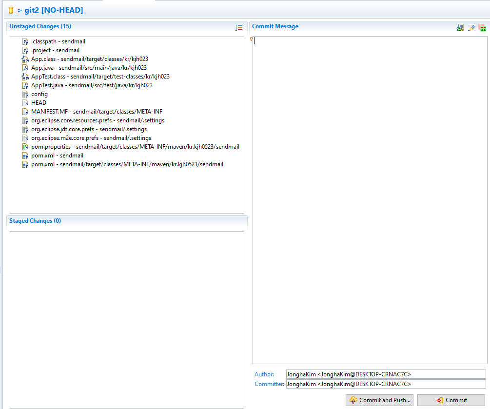Unstage에 있는 내용을 Staged Changes로 드래그앤 드랍해서 끌어다 놓으시고 Commit을 눌러야 하네요 ㅎㅎ