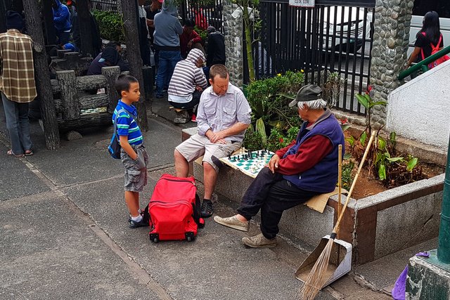 In many instances, I'm still awed by the interesting scenes that I experience here in the Philippines. Earlier today, I saw how the two guys (chess players) at the Igorot park were enjoying a game of chess under the mid day sun. In this place, several matches are being held from morning until night time (in some occasions). These are not professional matches but it serves as a source of income for tge defender (local guy)