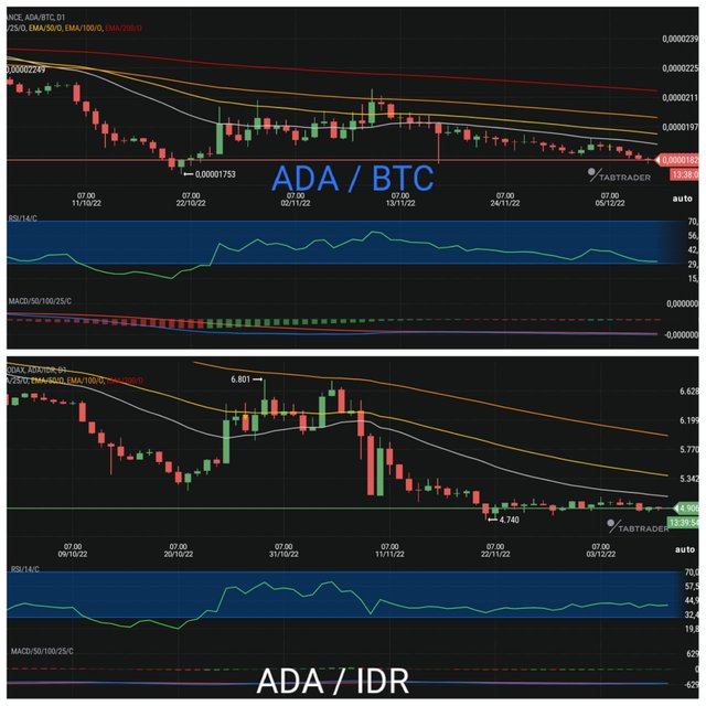 Here are the prices dailys #ADA/BTC & #ADA/IDR for of month November - December 2022 based on the BINANCE and INDODAX market.