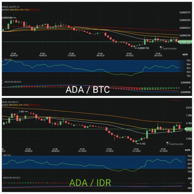 Here are the prices dailys #ADA/BTC & #ADA/IDR for of month September - November 2022 based on the BINANCE and INDODAX market.