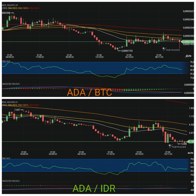 Here are the prices dailys #ADA/BTC & #ADA/IDR for of month October - November 2022 based on the BINANCE and INDODAX market.
