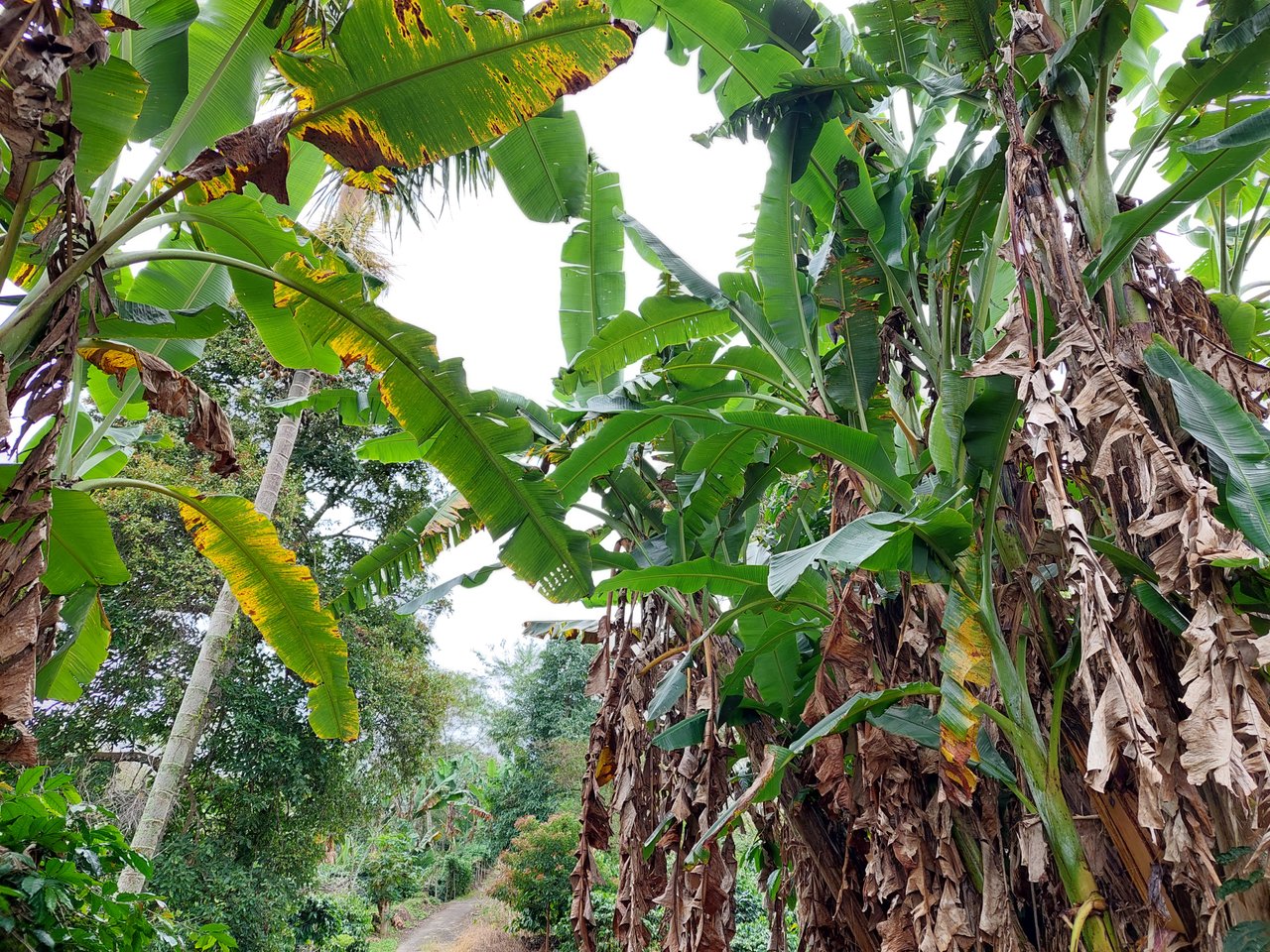 Lalu saya pergi ke kebun untuk mencari daun pisang, karena ikan yang saya beli tadi mau saya pepes, tiba di kebun saya melihat daun yang mana yang akan saya potong dan saya ambil yang bagusnya untuk di bawa pulang ke rumah,setelah saya selesai mengambil daun saya segera pulang ke rumah dan mulai membuat ikan pepes.