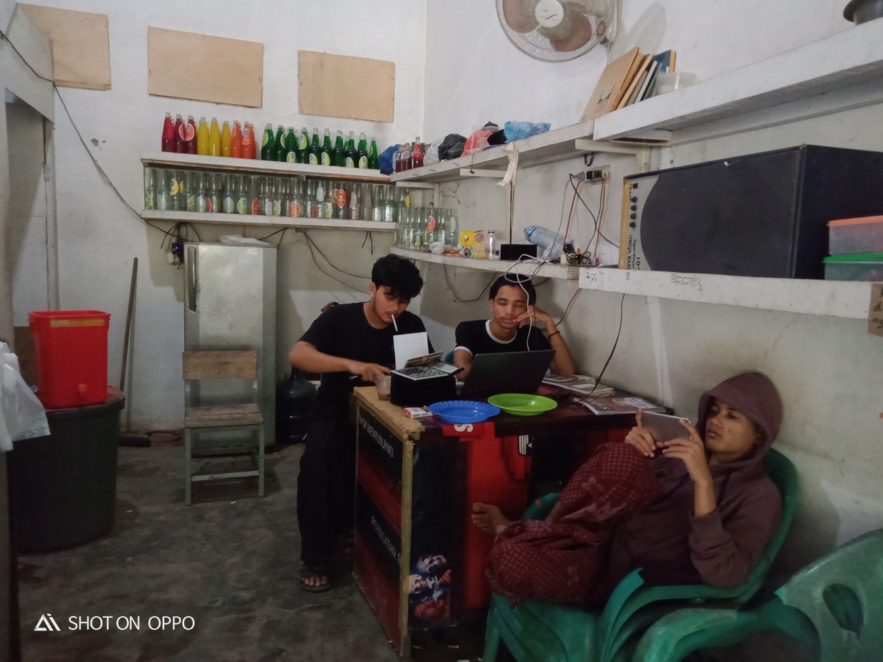 Dan setelah putar-putar meuredu saya kemudian mampir di kantin,dan saya jugak melihat kawan yang sedang diskusi lalu kemudian saya jugak ikut diskusi bersama kawan-kawan saya, lalu kemudian saya jugak melihat para santri yang lagi makan nasi bersama-sama