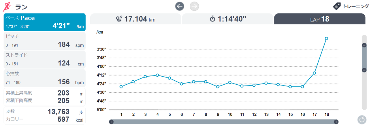 Average Heart Rate(平均心拍数): 156 bpm (Max : 189 bpm)