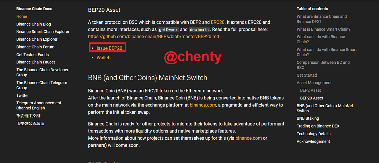 - Locate asset management in the table of contents on the right of the homepage and click on BEP20 asset.