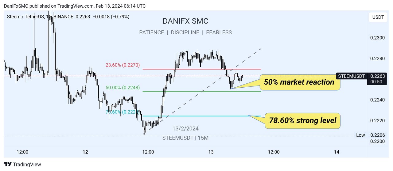 Yes Alhamdulillah With smC we can see a good result on steem Chart you can See I mentioned the 78.60% level and same point was our Orderflow According to SMC orderflow is Very valid Point for look Any buy or sell.