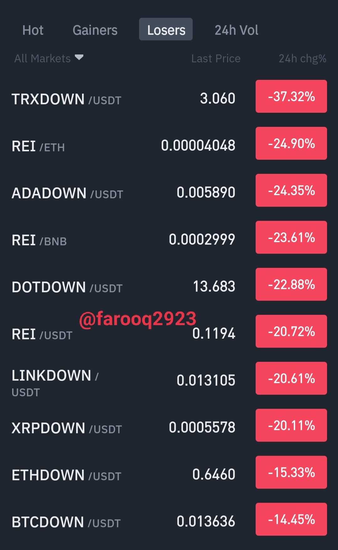 • Here we have the coin that are loosing their price from the yesterday price and it can also be seen with percentage.